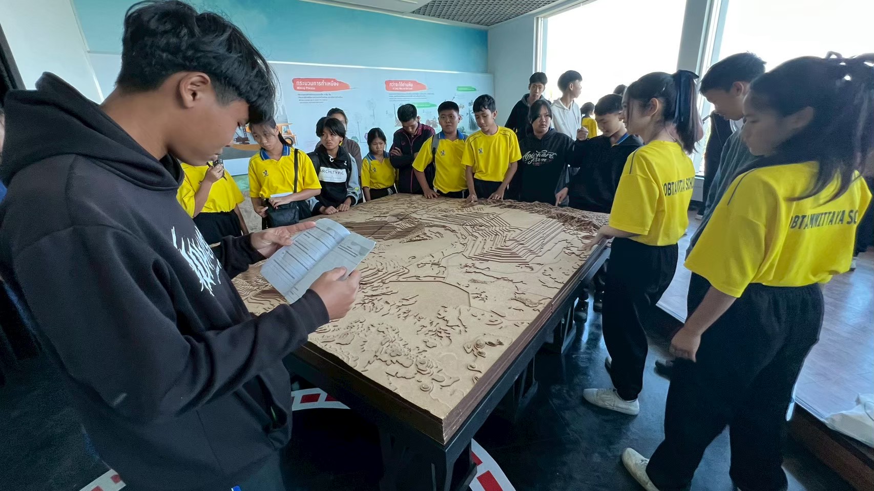 นักเรียนศึกษาหาความรู้ในพิพิธภัณฑ์ศูนย์ถ่านหินลิกไนต์ศึกษา (เหมืองแม่เมาะ) เฉลิมพระเกียรติฯ