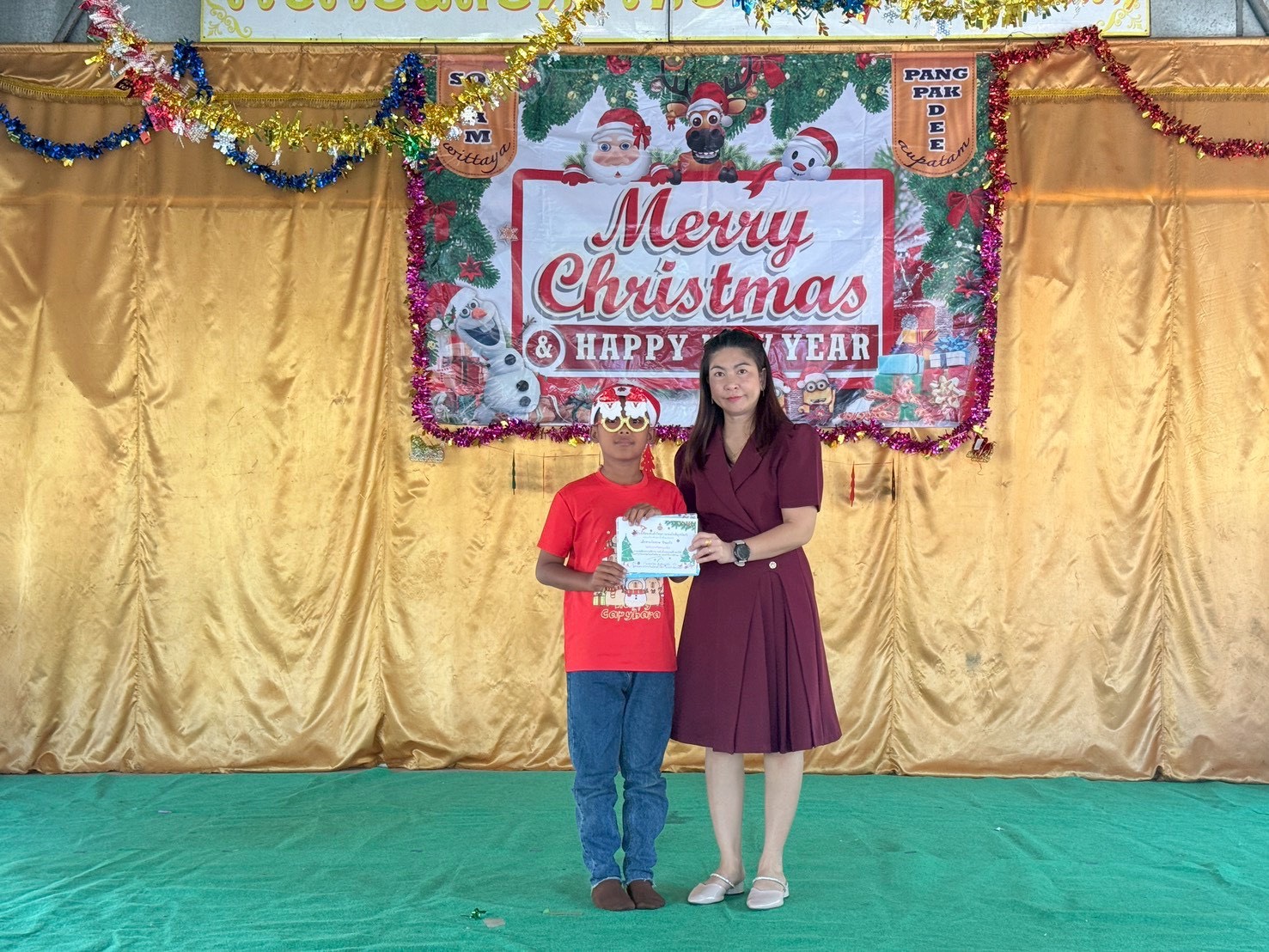 นักเรียนรับเกียรติบัตรการประกวดวาดภาพวันคริสต์มาส