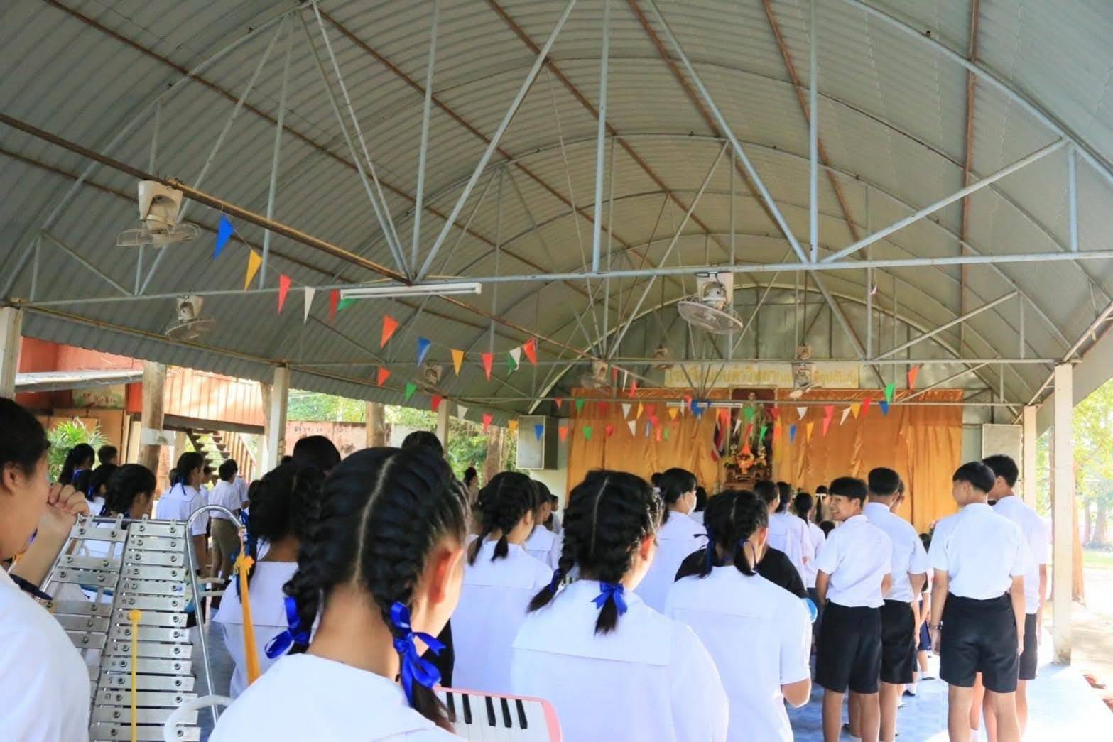 1. ประดับพระฉายาลักษณสมเด็จพระเจาอยูหัว บริเวณดานหนาโรงเรียน และหอประชุมโรงเรียน ประดับธงชาติไทยและผาเหลืองขาวบริเวณรั้วโรงเรียน ตั้งแตวันที่ 1 กรกฎาคม 2568 เปนตนไป